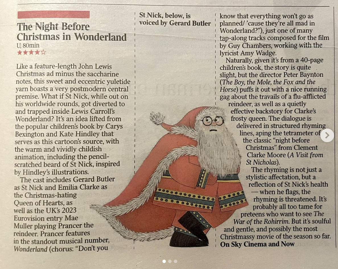 Universal Pictures Content Group and Lupus Films join to create an animated musical comedy, a mash-up of Lewis Carroll's Alice in Wonderland and the famous poem Twas the Night Before Christmas by Clement Clarke Moore. The Night Before Christmas in Wonderland stars Gerard Butler, Emilia Clarke and Simone Ashley, is directed by Peter Baynton and features original songs written by Guy Chambers and Amy Wadge.
